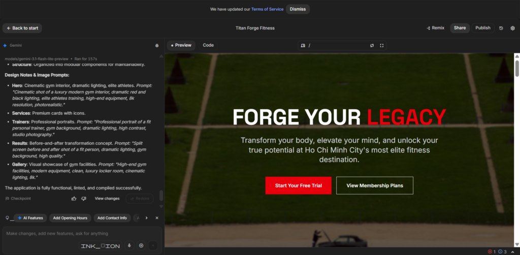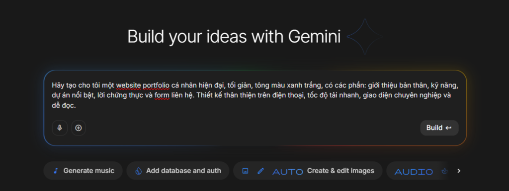 Sau khi vào AI Studio, bạn hãy nhập prompt mô tả website mà mình muốn tạo.